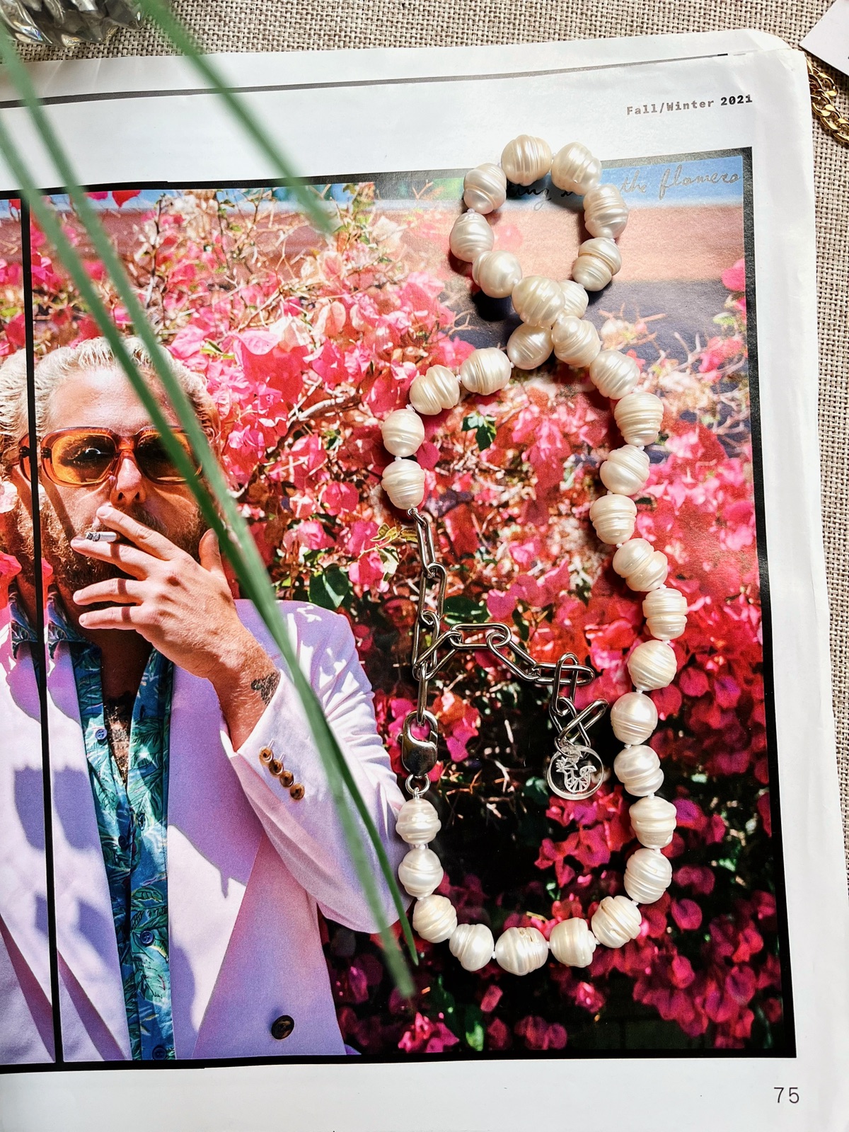Nuestro All-White en perla natural XL en hilo de seda.