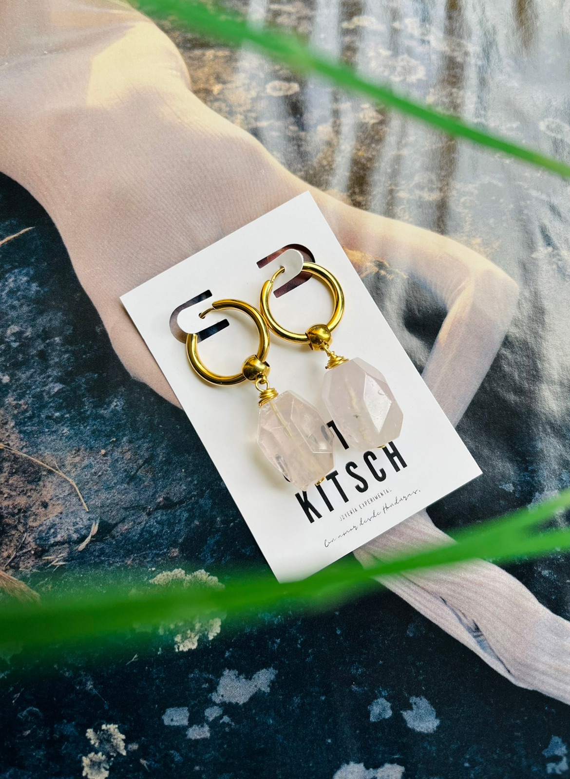 - Par de Hoops con nuestra selección de piedra cuarzo rosa pulida 🪬