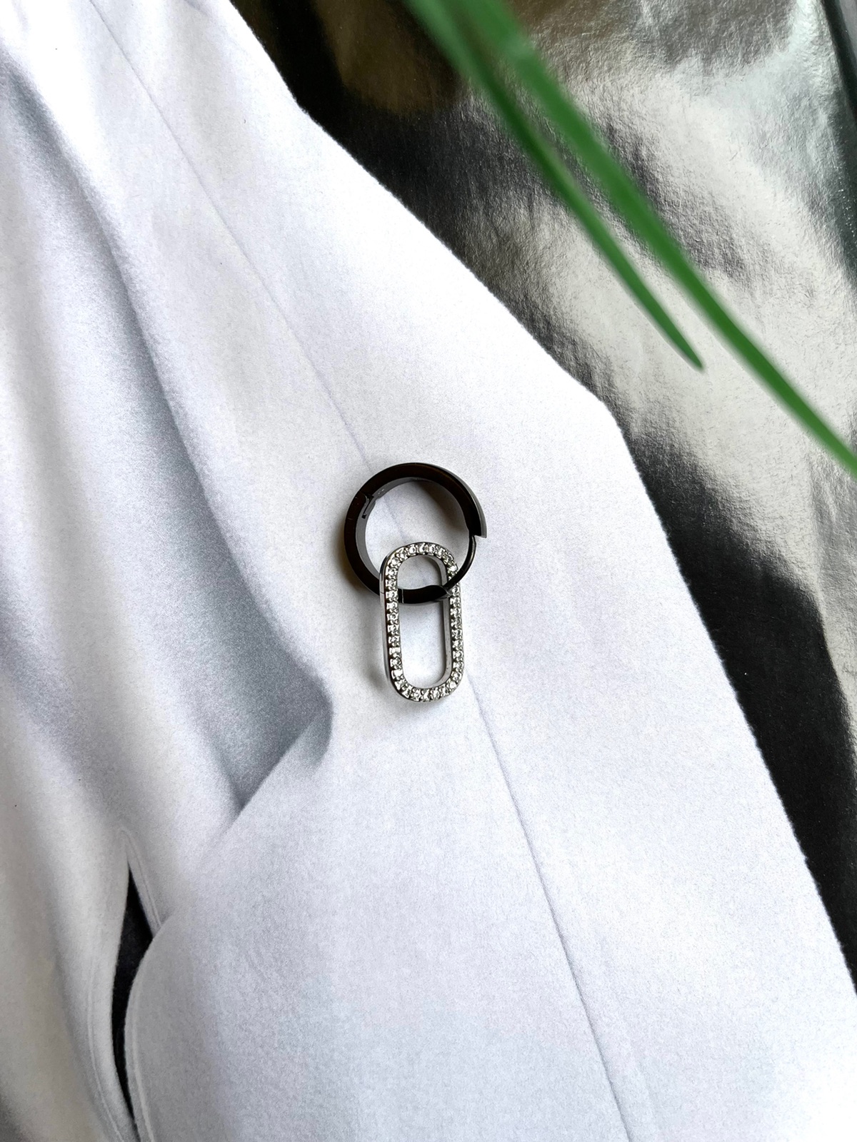 Stainlesse Steel chromated dark hoop con un sobrio loop removible de micropave con baño de plata