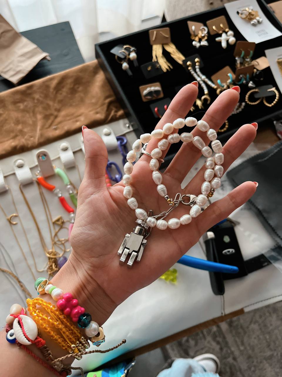 • Con charm de Robot en acero.
