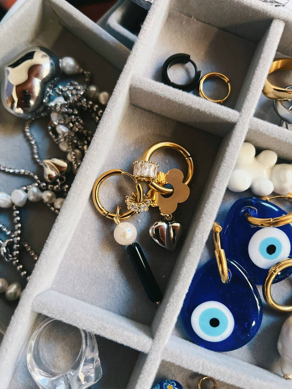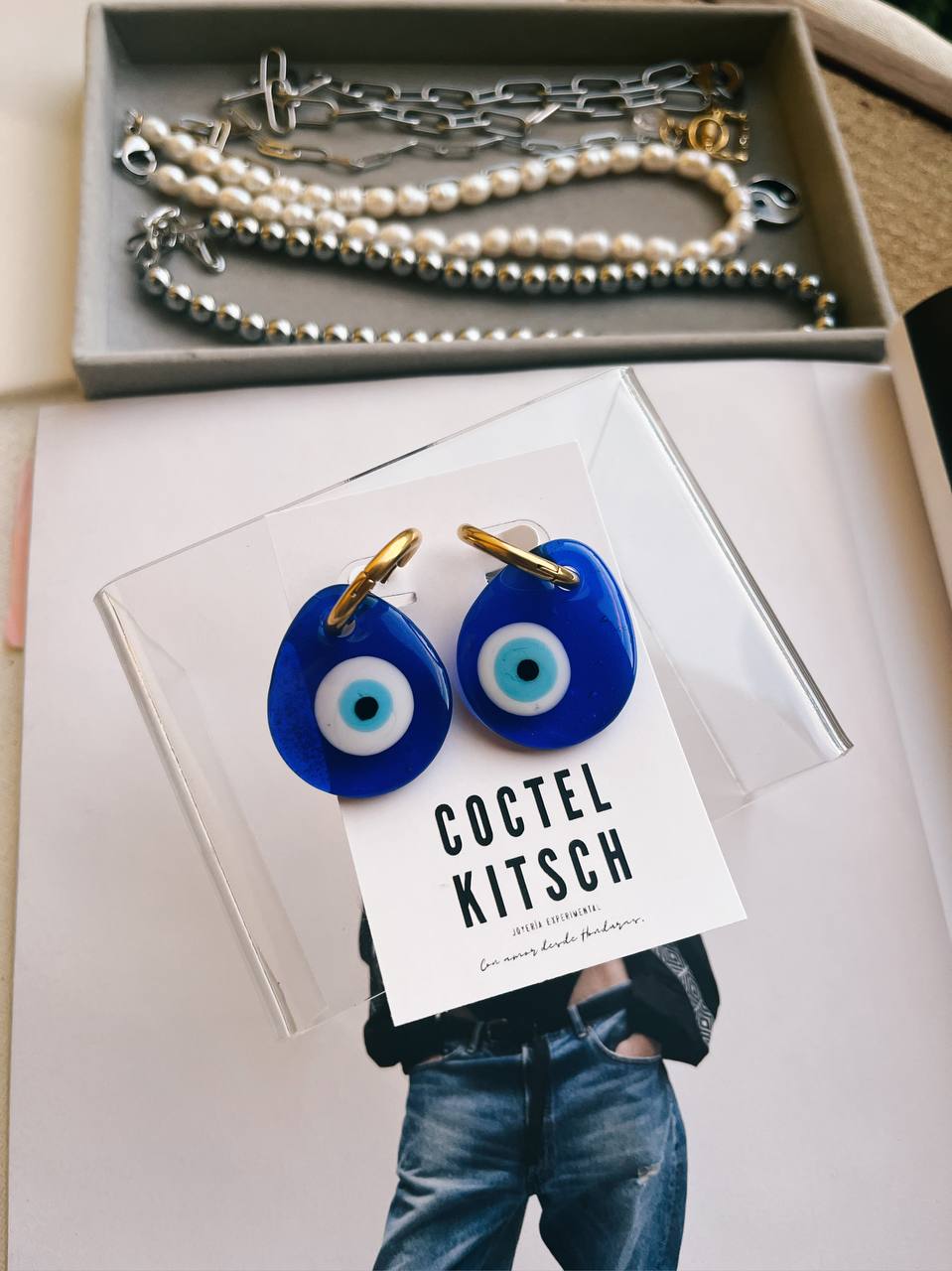 Argolla de Acero junto a Charm de Ojo Nazar Original, en tamaño grande.