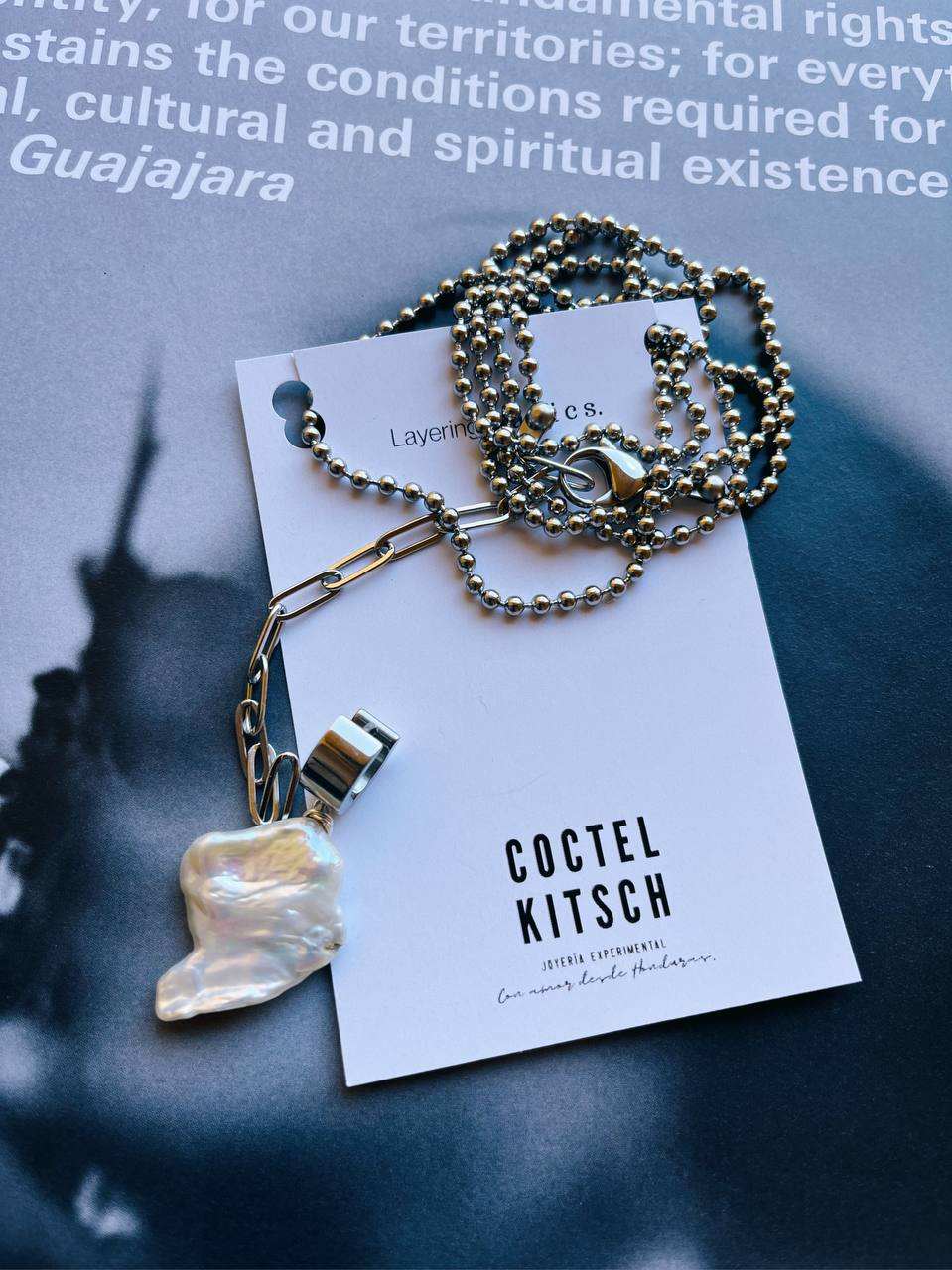 Cadena de bolas junto a chunky charm de perla natural grande🔥